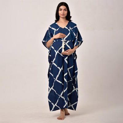 Printed Pure Cotton Maternity & Nursing Kaftan Maxi Nightdress