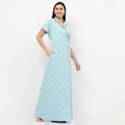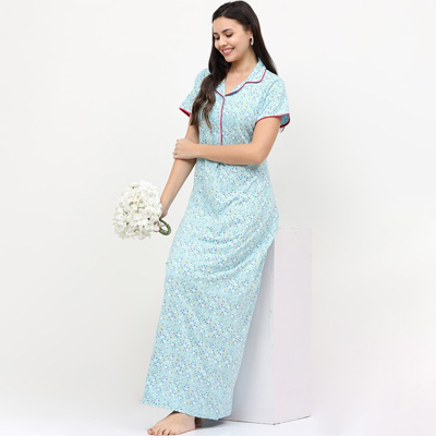 "ash in absolute comfort and style by getting your hands on this nightdress. The entire range of nightwear by this label is all things cozy and feminine. Features Round neck Short sleeves Maxi Size & Fit The model (height 5'8) is wearing a size S Material & Care Material: 12% Cotton, 37% Rayon, 51% Polyester Delicate Machine Wash"