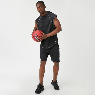 "Black solid mid-rise sports shorts with reflective print, has an elasticated waistband with drawstring closure, 2 pockets
