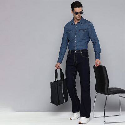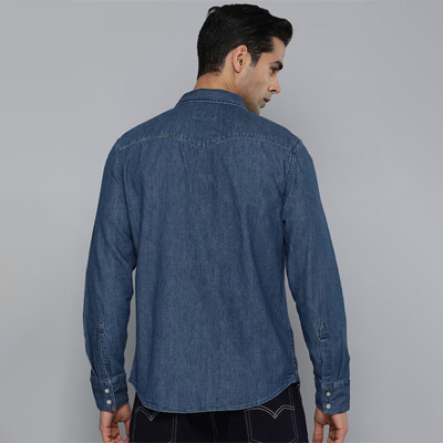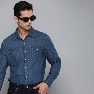"Blue solid opaque Casual shirt ,has a spread collar, snap button placket, 2 patch pocket, long regular sleeves, curved hem Size & Fit: Slim Fit Size worn by the model: M Chest: 38"" Height: 6'1"" Material & Care 100% Cotton, Machine-wash"