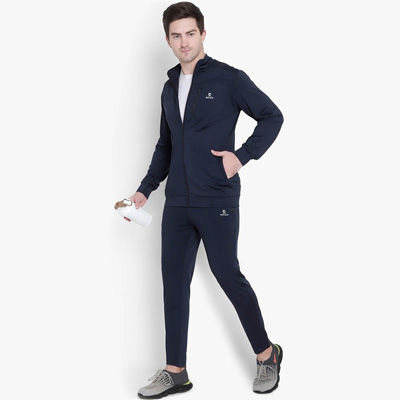 "solid Slim-Fit tracksuit consists of a jacket and track pants solid slim-fit sporty jacket, has a mock collar, long sleeves, a zip closure, 2 zipped pockets, and an attached polyester lining solid slim-fit mid-rise track pants, has an elasticated waistband with a drawstring closure, with 2 pockets Size & Fit Slim-Fit The model (height 6') is wearing a size M Material & Care Polyester Hand Wash"