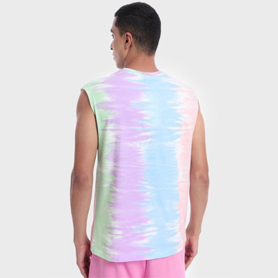 "White & blue tie & dye innerwear vest, has a round neck and sleeveless