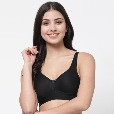 "This padded and non-wired cotton t-shirt bra can be used for everyday wear under t-shirts and tops to kurtas and shirts. The seamless cups provide for a smooth finish with no shows on your outfit and the brushed back hook & eye provides for extra comfort.