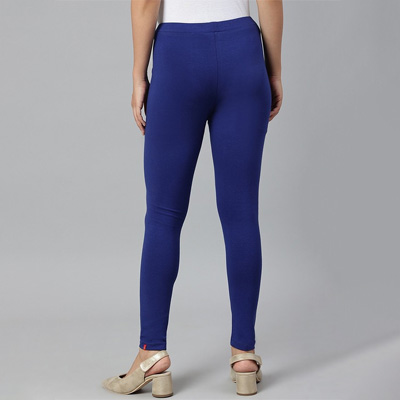 "Blue solid regular-fit ankle-length leggings in blue, has an elasticated waistband and slip-on closure