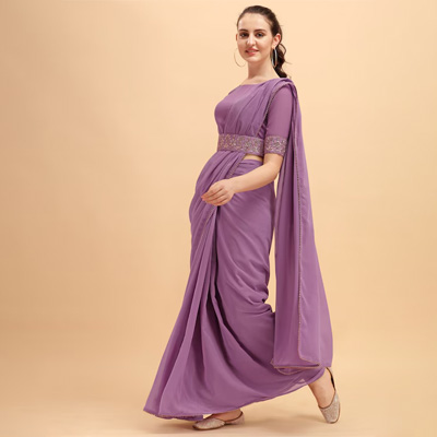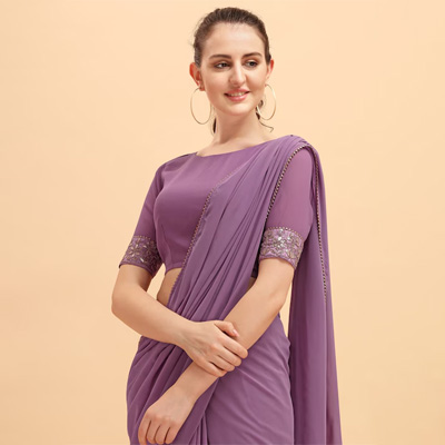 "Sangria Women Purple Solid Saree with Embellished Belt Size & Fit Saree: 5.50 mtr, Blouse Piece: 1 mtr Material & Care Saree:Georgette,Blouse:Georgette,Dry Clean"